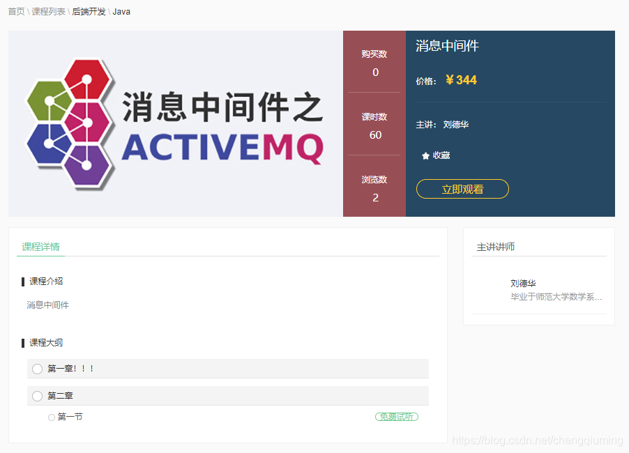 /*** 功能描述:根据讲师id获取讲师详情页数据** @param id 讲师id* @return Map<String, Object> 封装讲师信息和课程信息* @author cakin* @date 2020/12/18*/@Overridepublic Map<String, Object> selectTeacherInfoById(String id) { Teacher teacher = baseMapper.selectById(id); QueryWrapper<Course> courseQueryWrapper = new QueryWrapper<>(); courseQueryWrapper.eq("teacher_id", id); List<Course> courseList = courseMapper.selectList(courseQueryWrapper); Map<String, Object> map = new HashMap<>(); // 讲师信息 map.put("teacher", teacher); // 课程列表 map.put("courseList", courseList); return map;} /*** 功能描述:根据id查询课程** @param courseId 课程id* @return R 返回给前端的数据* @author cakin* @date 2020/12/19*/@ApiOperation("根据id查询课程")@GetMapping("get/{courseId}")public R getById(@ApiParam(value = "课程id", required = true) @PathVariable String courseId) { // 查询课程信息和讲师信息 WebCourseVo webCourseVo = courseService.selectWebCourseVoById(courseId); // 查询当前课程的嵌套章节和课时信息 List<ChapterVo> chapterVoList = chapterService.nestedList(courseId); return R.ok().data("course", webCourseVo).data("chapterVoList", chapterVoList);} // 根据课程id获得课程详情 getById(id) { return request({ url: `/api/edu/course/get/${id}`, method: 'get' }) }, <script>import courseApi from '~/api/course'export default { async asyncData(page) { const response = await courseApi.getById(page.route.params.id) return { course: response.data.course, chapterList: response.data.chapterVoList } }}</script> <template> <div id="aCoursesList" class="bg-fa of"> <!-- 课程详情 开始 --> <section class="container"> <!-- 课程所属分类 开始 --> <section class="path-wrap txtOf hLh30"> <a href="/" title class="c-999 fsize14">首页</a> \ <a href="/course" title class="c-999 fsize14">课程列表</a> \ <a :href="'/course?subjectParentId='+course.subjectLevelOneId" class="c-333 fsize14">{ { course.subjectLevelOne }}</a> \ <a :href="'/course?subjectParentId='+course.subjectLevelOneId+'&subjectId='+course.subjectLevelTwoId" class="c-333 fsize14">{ { course.subjectLevelTwo }}</a> </section> <!-- /课程所属分类 结束 --> <!-- 课程基本信息 开始 --> <div> <article class="c-v-pic-wrap" style="height: 357px;"> <section id="videoPlay" class="p-h-video-box"> <img :src="course.cover" :alt="course.title" class="dis c-v-pic"> </section> </article> <aside class="c-attr-wrap"> <section class="ml20 mr15"> <h2 class="hLh30 txtOf mt15"> <span class="c-fff fsize24">{ { course.title }}</span> </h2> <section class="c-attr-jg"> <span class="c-fff">价格:</span> <b class="c-yellow" style="font-size:24px;">¥{ { course.price }}</b> </section> <section class="c-attr-mt c-attr-undis"> <span class="c-fff fsize14">主讲: { { course.teacherName }} </span> </section> <section class="c-attr-mt of"> <span class="ml10 vam"> <em class="icon18 scIcon"/> <a class="c-fff vam" title="收藏" href="#" >收藏</a> </span> </section> <section class="c-attr-mt"> <a href="#" title="立即观看" class="comm-btn c-btn-3">立即观看</a> </section> </section> </aside> <aside class="thr-attr-box"> <ol class="thr-attr-ol"> <li> <p> </p> <aside> <span class="c-fff f-fM">购买数</span> <h6 class="c-fff f-fM mt10">{ { course.buyCount }}</h6> </aside> </li> <li> <p> </p> <aside> <span class="c-fff f-fM">课时数</span> <h6 class="c-fff f-fM mt10">{ { course.lessonNum }}</h6> </aside> </li> <li> <p> </p> <aside> <span class="c-fff f-fM">浏览数</span> <h6 class="c-fff f-fM mt10">{ { course.viewCount }}</h6> </aside> </li> </ol> </aside> <div class="clear"/> </div> <!-- /课程基本信息 结束 --> <div class="mt20 c-infor-box"> <article class="fl col-7"> <section class="mr30"> <div class="i-box"> <div> <section id="c-i-tabTitle" class="c-infor-tabTitle c-tab-title"> <a name="c-i" class="current" title="课程详情">课程详情</a> </section> </div> <article class="ml10 mr10 pt20"> <!-- 课程详情介绍 开始 --> <div> <h6 class="c-i-content c-infor-title"> <span>课程介绍</span> </h6> <div class="course-txt-body-wrap"> <section class="course-txt-body" v-html="course.description"> <!-- 将内容中的html翻译过来 --> <!-- { { course.description }} --> </section> </div> </div> <!-- /课程详情介绍 结束 --> <!-- 课程大纲 开始--> <div class="mt50"> <h6 class="c-g-content c-infor-title"> <span>课程大纲</span> </h6> <section class="mt20"> <div class="lh-menu-wrap"> <menu id="lh-menu" class="lh-menu mt10 mr10"> <ul> <!-- 课程章节目录 --> <li v-for="chapter in chapterList" :key="chapter.id" class="lh-menu-stair"> <a title="chapter.title" href="javascript: void(0)" class="current-1"> <em class="lh-menu-i-1 icon18 mr10"/>{ { chapter.title }} </a> <ol class="lh-menu-ol" style="display: block;"> <li v-for="video in chapter.children" :key="video.id" class="lh-menu-second ml30"> <a :href="'/player/'+video.videoSourceId" :title="video.title" target="_blank"> <span v-if="Number(course.price) !== 0 && video.free===true" class="fr"> <i class="free-icon vam mr10">免费试听</i> </span> <em class="lh-menu-i-2 icon16 mr5"> </em>{ { video.title }} </a> </li> </ol> </li> </ul> </menu> </div> </section> </div> <!-- /课程大纲 结束 --> </article> </div> </section> </article> <aside class="fl col-3"> <div class="i-box"> <!-- 主讲讲师 开始--> <div> <section class="c-infor-tabTitle c-tab-title"> <a title href="javascript:void(0)">主讲讲师</a> </section> <section class="stud-act-list"> <ul style="height: auto;"> <li> <div class="u-face"> <a :href="'/teacher/'+course.teacherId" target="_blank"> <img :src="course.avatar" width="50" height="50" alt> </a> </div> <section class="hLh30 txtOf"> <a :href="'/teacher/'+course.teacherId" class="c-333 fsize16 fl" target="_blank">{ { course.teacherName }}</a> </section> <section class="hLh20 txtOf"> <span class="c-999">{ { course.intro }}</span> </section> </li> </ul> </section> </div> <!-- /